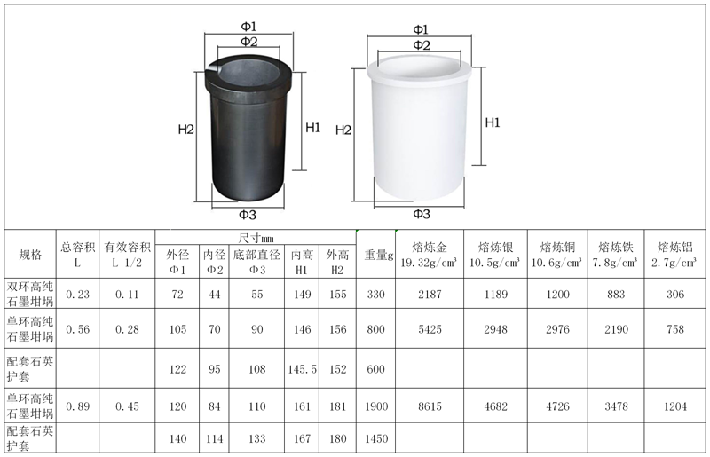 | 采用石墨坩埚,石墨坩埚主要用于铜、铝、合金等有色金属的熔炼。 | |
