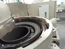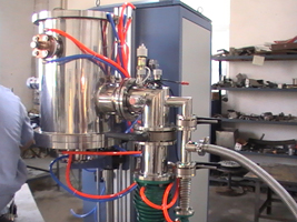真空炉体由炉体、炉盖及安装其上的相关附件、炉盖提升机构、底架等组成。其中炉体炉盖均匀双层水冷结构,内层用非磁性材料的不锈钢板,外层用不锈钢制造,炉盖上配有进口双色红外测温仪、安全阀、压力传感器、铠装热电偶接口、充气阀、压力真空表、电磁放气阀、扶手等便于操作,炉体上设有防爆装置、测均温用的热偶接口、进电及真空管道的接口,炉盖提升机构完成上下开启关合炉盖的动作,该动作驱动由油压千斤顶完成,开启平稳则由人工实现,底架用于支撑整个真空溶室。