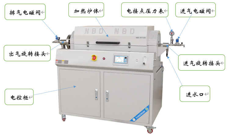 设备简介: 该设备的主要特点是可以实现粉体或者颗粒状的物料在真空或者保护气氛下的烧结处理,炉管采用310s高温不锈钢材质,炉管里面设置有活动拨片,方便炉管清理,同时炉管旋转可以带动拨片实现物料的翻腾,使得物料的混合更加均匀; 炉管可以承受高温下的正压烧结,可以保证700度耐压0.4Mpa的高压使用,安全保护上设置了3级保护,前2级是通过压力传感器或者电接点压力表控制排气电磁阀的打开实现泄压,第3级保护是机械安全阀,可以实现精准泄压,安全性更高;炉衬采用高纯氧化铝轻质纤维材料,控制系统采用先进的PLC+触摸屏操控系统,操作更加简单方便。