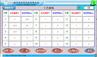 | 1、烧结工艺曲线设置:动态显示设置曲线,设备烧结可预存多条工艺曲线,每条工艺曲线可自由设置; | |