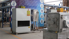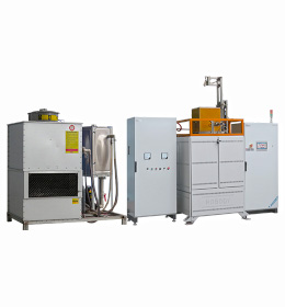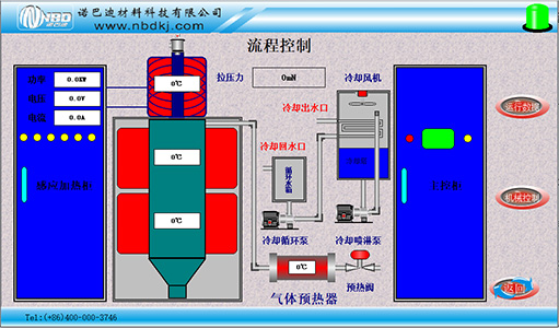 | 设备简介: 中频感应合金升华炉包含感应熔炼系统、辅助加热系统、气体预热系统三大加热系统,三套加热系统的控制都可以在主电控柜的触摸屏上进行控制,感应熔炼系统又配有一套电动升降系统,主要用于控制下料的开启和闭合,同时设置有压力传感器防止误操作引起设备的损坏,感应加热的测温采用的是双色红外测温仪进行测温,通过感应线圈加热石墨坩埚间接传递热量实现物料的熔炼,当物料熔化后,电动开启料杆上移实现下料,辅助加热系统采用的是电阻加热的方式,加热速度比较慢,因此需要实现升温到需要的温度进行等待,然后开启气体预热,最后才能开启料杆上移,让熔化的物料往下流,通过强力风刀打散物料,产生的气体有专门的冷却收集管道进行收集。 | |||||||
