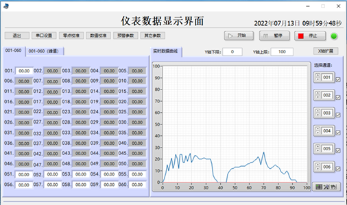 | 仪表数据实时监控终端 1、压力数据曲线实时显示; 2、多路通道自由选择及切换; 3、时间及压力二维数据实时记录并存储; 4、记录各数据,并自动生成报表,各数据报表打包生成文件。 | |