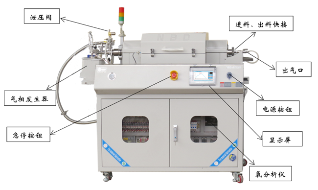 | 1.通过高精度氧分析仪确保无氧工作环境; 2.物料在基于旋转摆振结构的异形石英腔内,能够在稳定均匀的温场内,最大程度地与反应气体充分接触; 3.独有悬挂式气相发生器,能够在工作腔摆振的同时,始终保持水平稳定输出; 4.多路质量流量控制器,可精确控制气体流量; 5.高密封性连接工艺,确保可燃性气体及有毒有害气体无任何泄露,高灵敏度压力传感器及电磁阀可保证工作腔室内的压力始终在设定范围; 6.易燃易爆及有毒有害气体检测仪与设备联动,可及时获取实时数据并采取相应闭合措施,同时,两个报警仪在超出设定警戒值时发出预警提示; 7.工作腔室排出的尾气通过尾气处理罐进行无害化处理。 | ||||||||